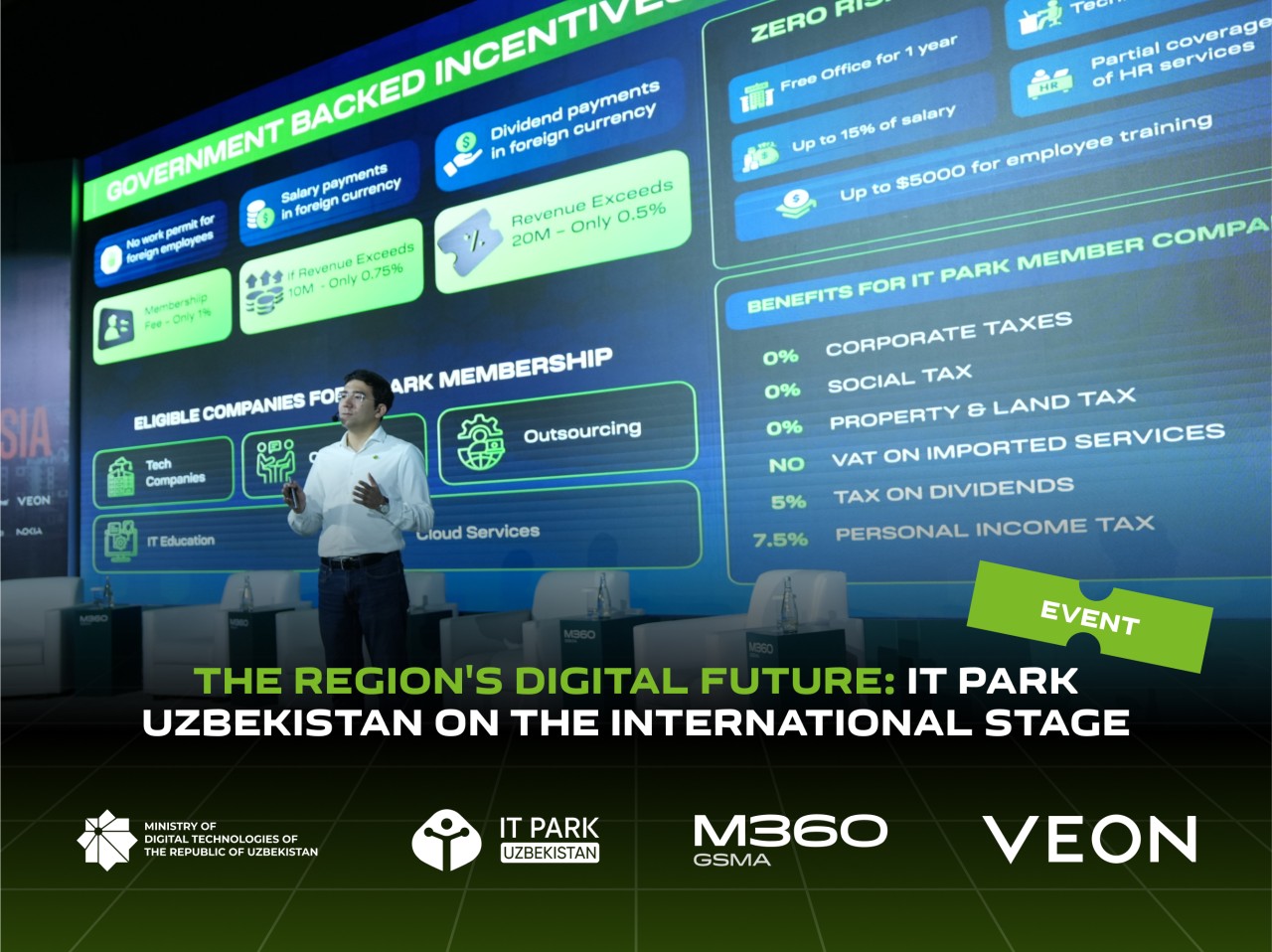 Joriy yilda Toshkentda ilk bor o‘tkazilgan M360 Eurasia 2025 xalqaro forumida O‘zbekiston mintaqaning o‘sib borayotgan raqamli yetakchisi maqomini yana bir bor tasdiqladi. Forum Raqamli texnologiyalar vazirligi va VEON ko‘magida o‘tkazildi. IT Park Uzbekistan vakili Sultonmurod Rasulov O‘zbekistonning jahon IT-ekotizimidagi o‘rni mavzusida taqdimot qildi.