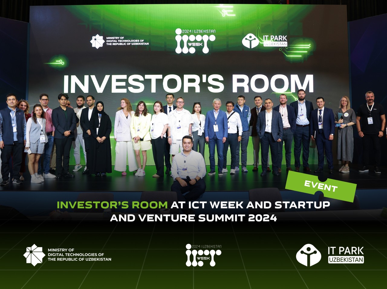 Toshkent, Oʻzbekiston — 2024-yil 18-sentyabr kuni “CAEx Expo Center” binosida IT Park Uzbekistan tomonidan tashkil etilgan “Startup & Venture Summit” doirasida “Investorʼs Room” oʻtkazildi. Tadbir butun dunyodan venchur kapitali yetakchi vakillari va istiqbolli startaplarni birlashtirib, toʻgʻridan-toʻgʻri muloqot qilish va potensial investitsiyalarni muhokama etish uchun noyob imkoniyat yaratdi.