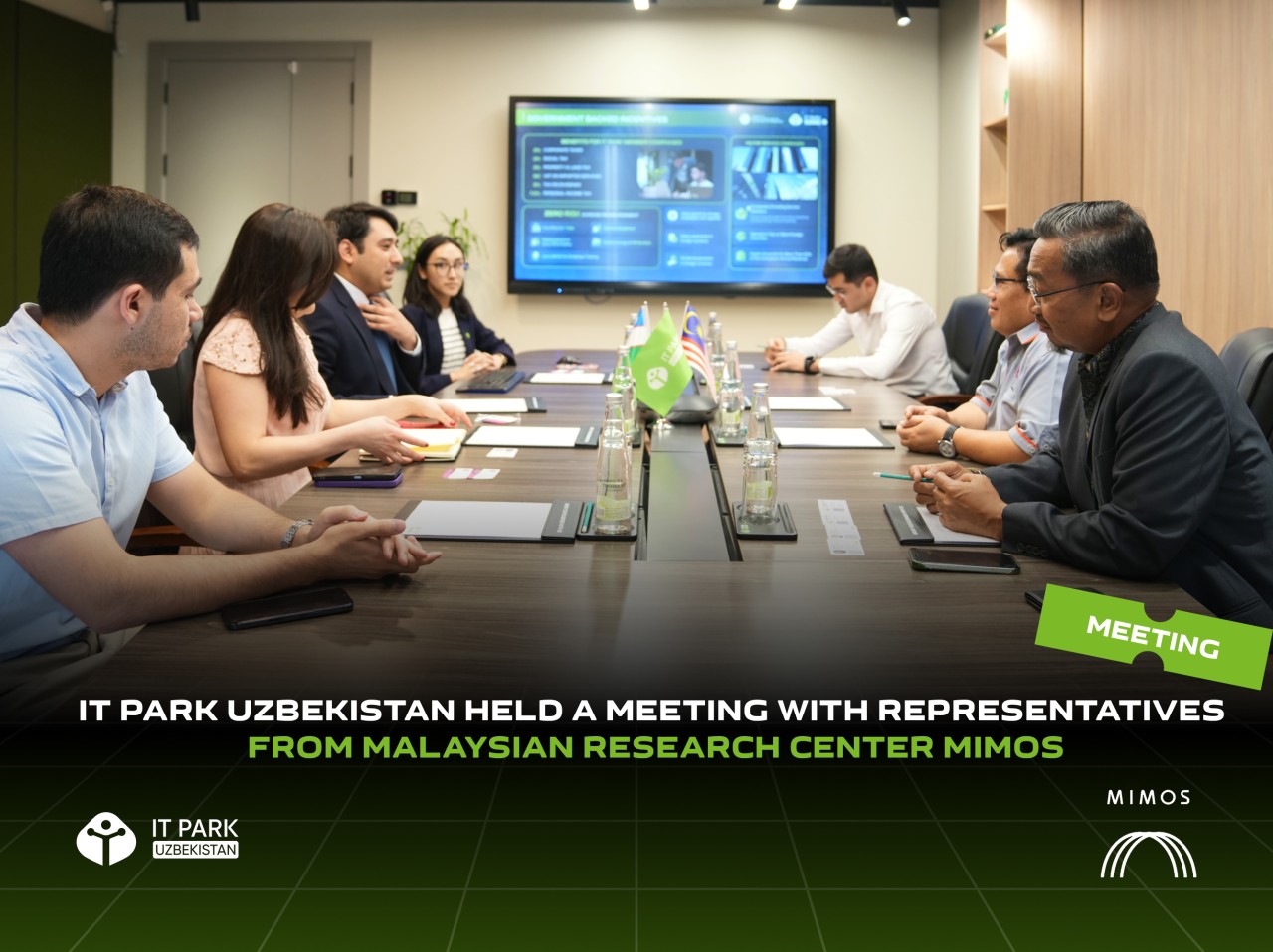 IT Park startap va investitsiyalarni rivojlantirish bo‘yicha direktori Elyor Maksudov boshchiligidagi delegatsiya Malayziya Fan, texnologiyalar va innovatsiyalar vazirligi huzuridagi “MIMOS” amaliy tadqiqotlar markazi bosh direktori Saat Shukri Embong rahbarligidagi Malayziya delegatsiyasi bilan muzokaralar olib bordi.