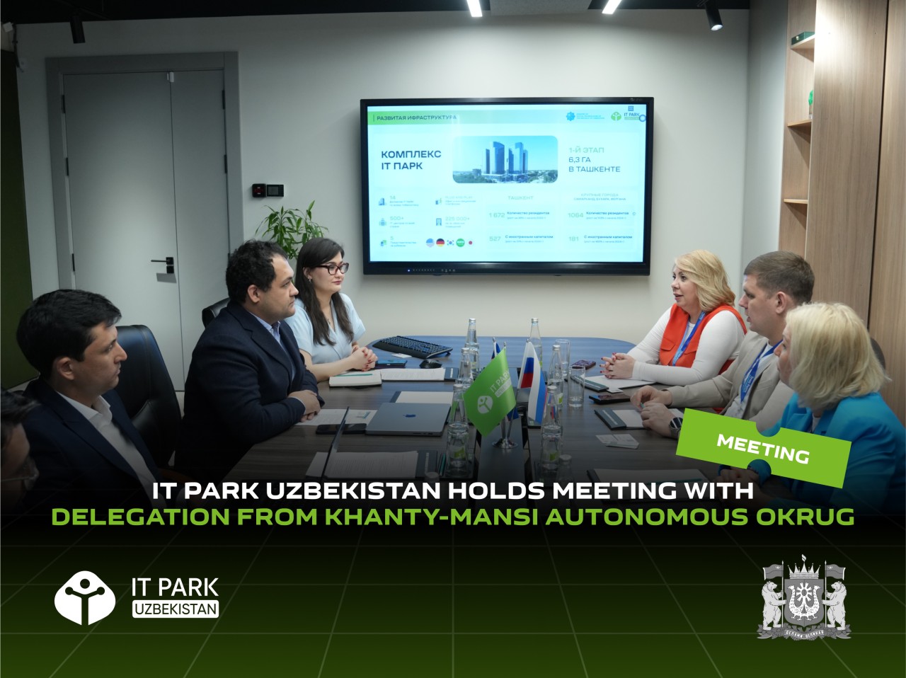IT Park Uzbekiston bosh qarorgohida biznesni rivojlantirish bo‘yicha direktor Jahongir Rajabov Xanti-Mansiysk avtonom okrugi — Yugra (Rossiya Federatsiyasi) delegatsiyasi bilan uchrashuv o‘tkazdi. Tomonlar raqamli rivojlanish va IT-biznesni qo‘llab-quvvatlash sohasidagi tajribalarini o‘zaro almashdilar.