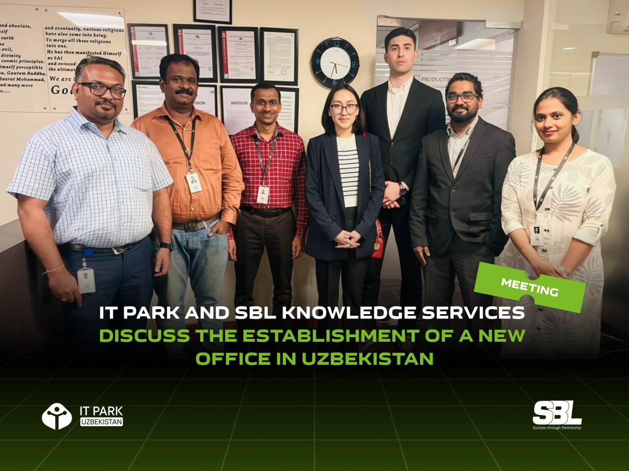 “SBL Knowledge Services” 19 yildan ortiq vaqt mobaynida biznes operatsiyalarini autsorsing qilish, IT-xizmatlarini qo‘llab-quvvatlash va sun’iy intellekt sohasidagi yechimlarni joriy etish kabi keng ko‘lamli xizmatlarni taqdim etib kelmoqda. Dunyo bo‘ylab 2000 dan ortiq mijozga ega bo‘lgan kompaniya AQSh va Buyuk Britaniyada ofislarni muvaffaqiyatli tashkil etish tajribasiga tayanib, bir nechta mavjud BPO loyihalarini O‘zbekistonga ko‘chirishni rejalashtirmoqda.