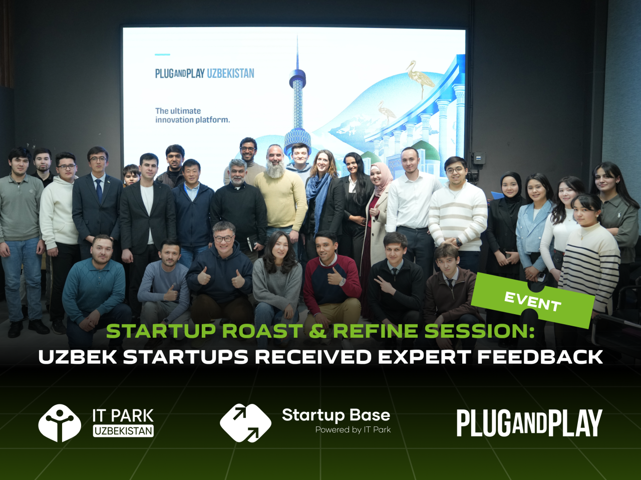 IT Parkning Maxtumquli filialida “Plug and Play Uzbekistan” va IT Park hamkorligida “Startup Roast & Refine Session” o‘tkazildi. Tadbir startaperlar, ekspertlar va investorlarni jamladi, asoschilarga o‘z taqdimotlarini takomillashtirish va qimmatli tavsiyalar olishga yordam berdi.