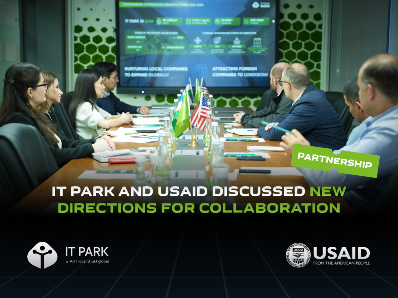 Встреча началась с презентации обновленной деятельности IT Park. Стороны обсудили перспективные направления совместных проектов и возможности финансирования со стороны USAID. Среди обсуждаемых идей были проекты по поддержке экспорта резидентов IT Park, инвестиционная поддержка компаний, включая стартапы, и образовательные программы для инклюзивных групп населения, поддержка женщин в BPO с последующим трудоустройством и защита социально-уязвимых слоев в цифровой среде.