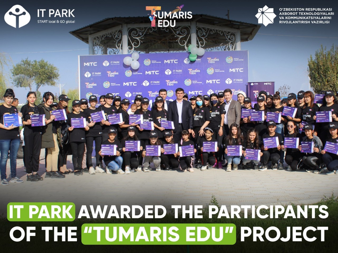 В филиале IT Park Сырдарьинской области была проведена церемония награждения участниц, прошедших курсы компьютерной грамотности в рамках ранее запущенного проекта Tumaris EDU от IT Park для женщин и девушек в возрасте от 16 до 35 лет.