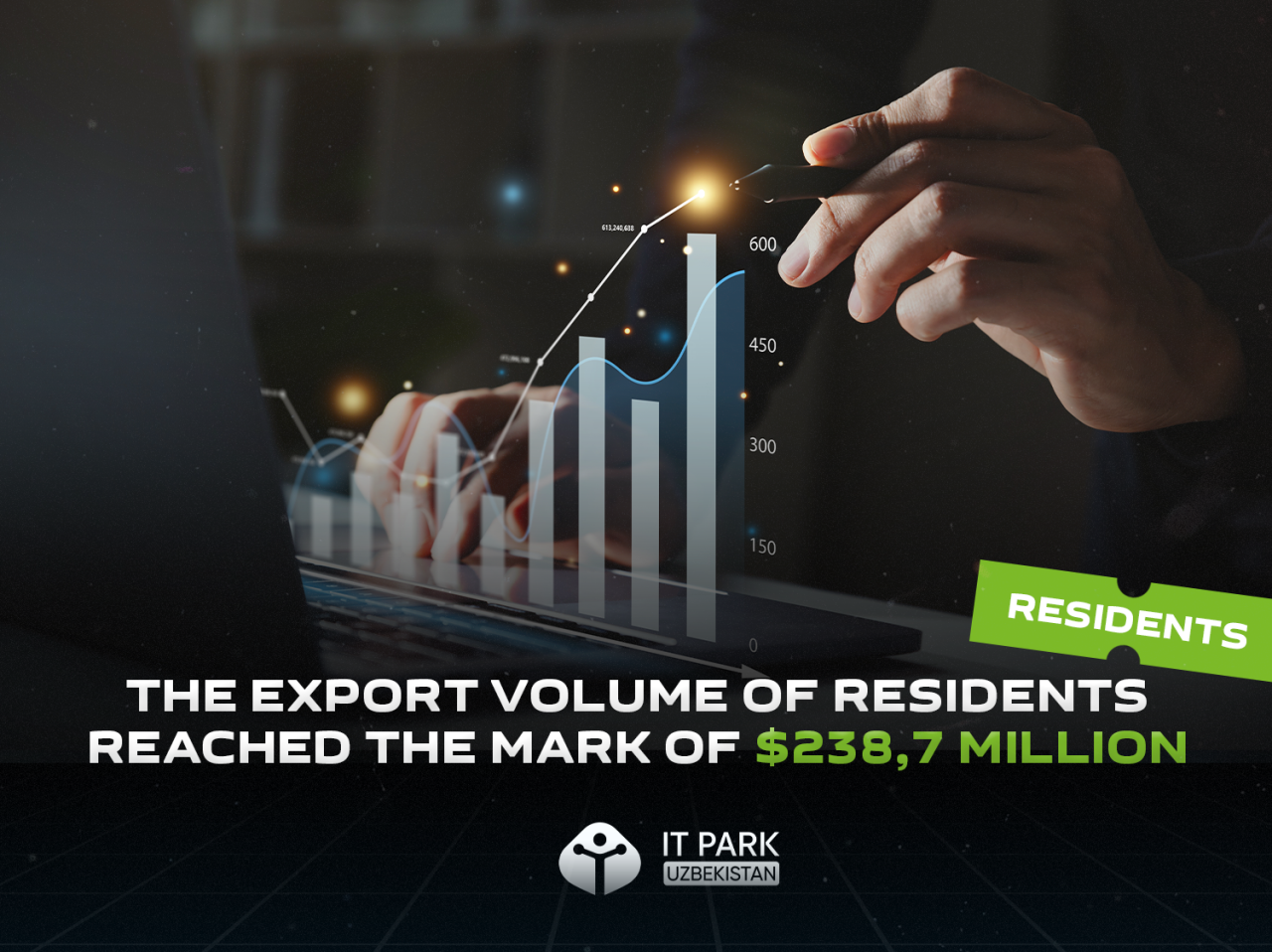 По итогам 9 месяцев 2023 года, общее количество резидентов IT Park составляет 1470 компаний: 431 из них зарегистрированы в регионах Узбекистана и 1039 — в Ташкенте. 305 резидентов являются образовательными компаниями, а количество компаний с участием иностранного капитала составило 244. Заметно увеличилось число экспортно ориентированных компаний-резидентов IT Park, достигнув за первые 9 месяцев 2023 года отметки в 520 (из которых 316 — IT-сервис и 204 — BPO-услуги). Это в 1,8 раза больше, чем в предыдущем году.