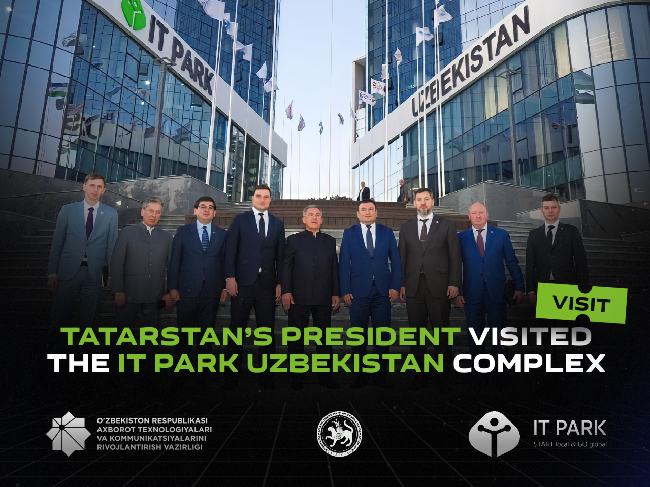 11 октября в рамках рабочего визита в Узбекистан Президент Республики Татарстан Рустам Нургалиевич Минниханов ознакомился с развитием и возможностями ИКТ-сферы Узбекистана, в частности, посетил комплекс IT Park Uzbekistan.