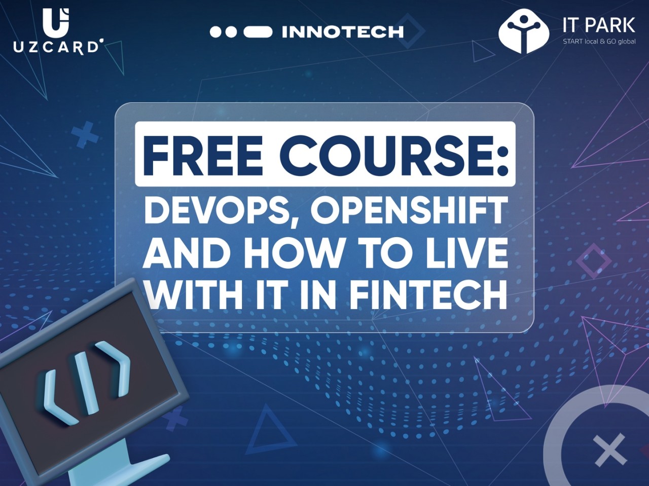 14 декабря 2021 года резидент IT Park «UZCARD», общереспубликанский процессинговый центр Республики Узбекистан, совместно с ГК «Иннотех», ведущим поставщиком высокотехнологичных решений для цифровизации банковской отрасли, при поддержке IT Park Uzbekistan готовы объявить о начале приема заявок на уникальный бесплатный образовательный IT-курс: «DevOps, OpenShift и как с этим жить в финтехе», который стартует 1 февраля 2022 года. Проект рассчитан на повышение профессионального уровня CI/CD инженеров и DevOps специалистов. Курс также может быть полезен системным администраторам, которые хотят попробовать себя в роли CI/CD инженера.
