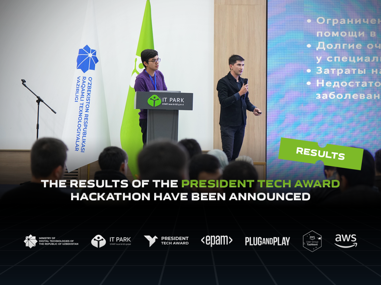 С 13 по 15 октября в IT-академии Astrum состоялся хакатон в рамках конкурса President Tech Award. Мероприятие было организовано IT Park при поддержке Министерства цифровых технологий. Партнерами хакатона выступили EPAM Systems, Amazon Web Services (AWS), AWS User Group, Plug and Play и Google Developer Groups (GDG).