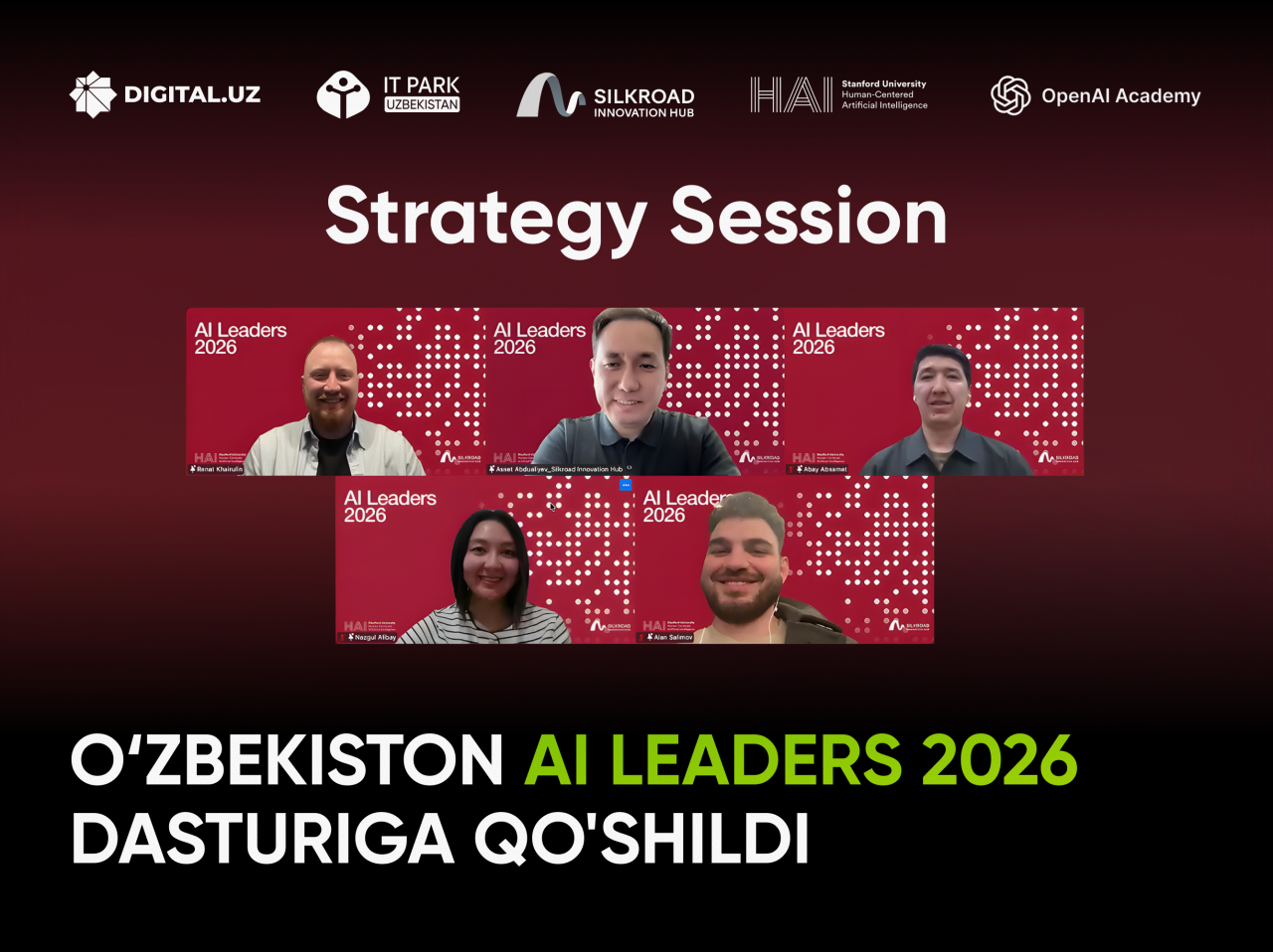 O‘zbekistondagi 25 dan ortiq yetakchi tashkilotlardan 100+ rahbar AI Leaders 2026 executive ta’lim dasturiga qo‘shildi. Loyiha Stanford University Human-Centered Artificial Intelligence Institute, OpenAI Academy va Silkroad Innovation Hub hamkorligida amalga oshirilmoqda.